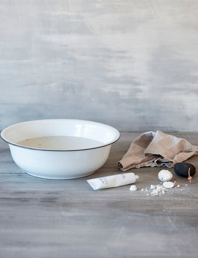 Slap helt af og nyd et dejligt fodbad i dette store og enkle fad fra Meraki. Størrelsen er også ideel til brug i køkkenet, når du skal vaske op. Med det simple og lidt nostalgiske design i hvid med mørk kant ledes tankerne hen på de gammeldags badeanstalter, og dit badeværelse får et strejf af velvære. Fadet hedder Large og fås også i en mindre version. Enhver variation og ufuldkommenhed i overfladen er del af baljens charme og en bevidst del af designet.