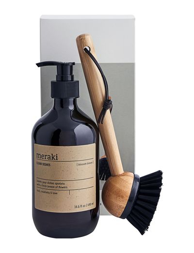 Det er nemt at give en gave og sprede glæde med en gaveæske. Denne æske fra Meraki består af en opvaskebørste og et opvaskemiddel. Børsten er designet med et bambusskaft, mens hovedet kan udskiftes. Opvaskemidlet hedder Blossom Breeze, er Svanemærket og har en skøn duft af appelsin og lemon.
