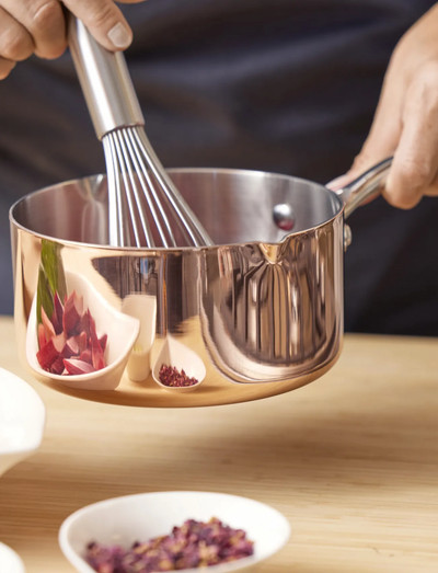 Diameter 16 cmHøjde 8 cm1,5 liter18/8 rustfrit stål indvendigtUdvendig kobberbelægningIkke egnet til maskinopvaskHåndopvask med blød børste og sæbe anbefalesBrug af kobberpudsemiddel vil holde ydersiden blankTil alle varmekilder