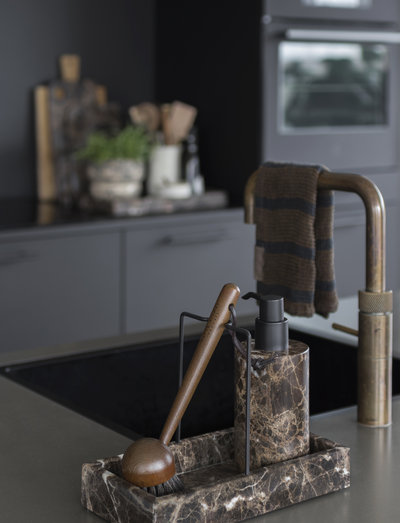 Optimer pladsen omkring håndvasken i dit køkken med det praktiske og dekorative MARBLE opvaskesæt fra Mette Ditmer. Det er perfekt til opbevaring af de mest essentielle ting, når du vasker op. Med plads til en sæbedispenser og opvaskebørste, har du alt inden for rækkevidde. Børsteholderen fungerer også som et sted at hænge karkluden, når den skal tørre.
