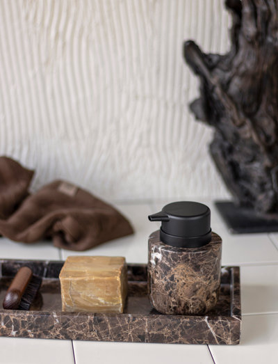 Dispenseren , der findes i to varianter og to forskellige farvevarianter, har en sort ABS pumpe. Kombinér dispenseren med de øvrige produkter i MARBLE-serien - tandbørsteholder, bakke og lysestager.