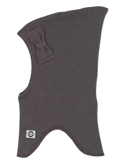 Solid coloured mikk-line balaclava designed for girls, as it has a feminine bow detail on the front. This double layered winter hat is made from a blend of merino wool and acrylic on the outside, and cotton on the inside.