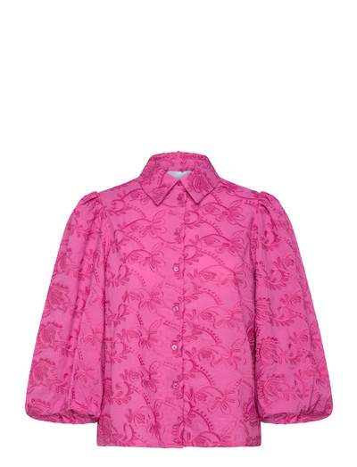 Detaljerede broderier løfter denne langærmede skjorte. Designet har en knaplukning foran og let puffede ærmer.