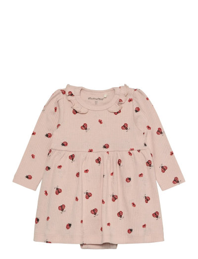Long-sleeved dress from Minymo. The dress features an all-over print. The collar is decorated with a frill. The dress has an integrated bodysuit. It is made of 100% cotton. Certified acc. to GOTS - organic CERES-0366 Certified acc. to OEKO-TEX® STANDARD 100 Cert. No. 2276-364 DTI