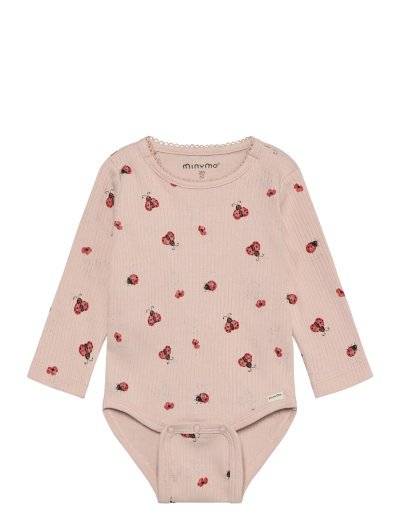 Long-sleeved bodysuit from Minymo. The bodysuit has an all-over print in a ribbed material. It closes with snap buttons between the legs. The bodysuit is made of 100% cotton. Certified acc. to GOTS - organic CERES-0366 Certified acc. to OEKO-TEX® STANDARD 100 Cert. No. 2276-364 DTI