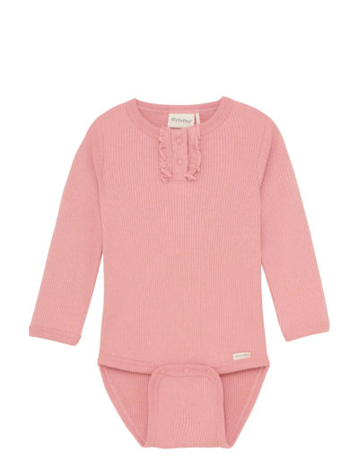 Fin ensfarvet langærmet body fra Minymo. Bodyen er lavet af en modalblanding, som føles behagelig mod huden. Bodyen lukkes med trykknapper mellem benene og knapper foran. Dette produkt indeholder TENCEL™-fibre. TENCEL™ er et varemærke tilhørende Lenzing AG.