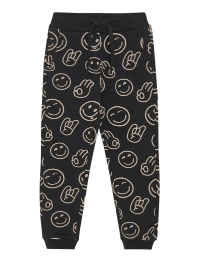 Sweatpants with an all-over smiley print, elastic waistband, and ribbed cuffs at the ankles for a fun and relaxed style. Certified acc. to GOTS - organic CERES-0366