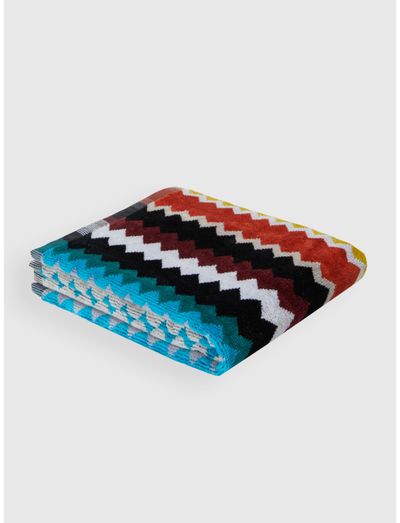 Chevron velour bomuldsfrotté håndklæde 40 cm x 70 cm. Curt erklærer modigt sit tilhørsforhold til Missoni-universet med et karakteristisk all-over zigzag-mønster. Det flerfarvede mønster, der dækker dem, skaber en rytme med en meget genkendelig følelse af stil, som er typisk for Missoni Home.