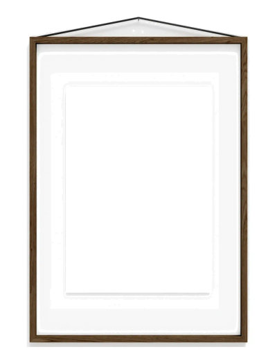 Fire trælister, to stykker akrylglas og en elastik. Den enkle, men smarte konstruktion bruger elastikken til både at holde rammen samlet og som ophæng til væggen. Den kan hænges både vandret og lodret og kan endda ses fra begge sider, hvilket giver dine kunstværker eller fotografier den opmærksomhed, de fortjener.