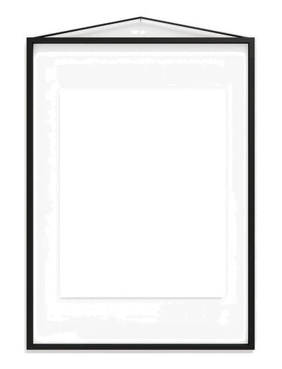 Fire trælister, to stykker akrylglas og en elastik. Den enkle, men smarte konstruktion bruger elastikken til både at holde rammen samlet og som ophæng til væggen. Den kan hænges både vandret og lodret og kan endda ses fra begge sider, hvilket giver dine kunstværker eller fotografier den opmærksomhed, de fortjener.
