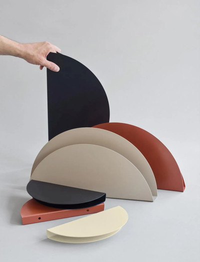 En perfekt cirkel og to enkle folder. Half Moon Shelf er designet til at rumme hverdagsting som nøgler, kaffekopper eller bøger, og til at se godt ud, mens man gør det. Behøver det at være mere kompliceret end det? Half Moon Shelf er lavet af pulverlakeret stål og fås i fire overflader og to størrelser, alle med samme perfekte cirkulære form.