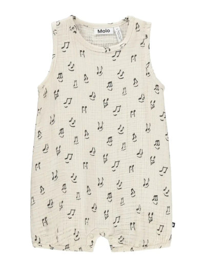 Tailored for warm summer days, this romper is crafted from soft cotton muslin, featuring a playful music print. Its sleeveless and legless design offers easy movement, ensuring comfort for your little one. With snap buttons at the shoulders and between the legs, dressing transitions are quick and hassle-free, making it an ideal choice for active toddlers.