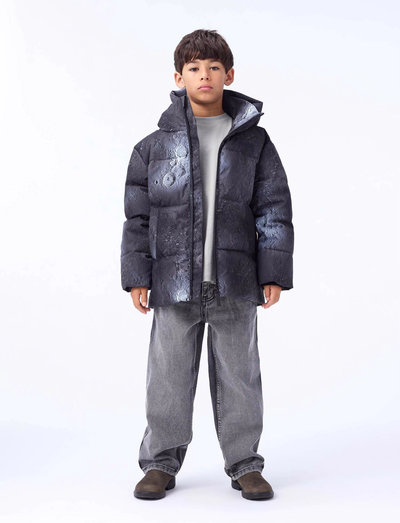 VindtætThis jacket is made of recycled polyester and features a print. It is designed with a practical zip closure, high collar, detachable hood, front pockets, an inner pocket, ribbed cuffs, and adjustable elastic at the bottom to help against the wind. A large reflector on the back increases visibility in traffic.