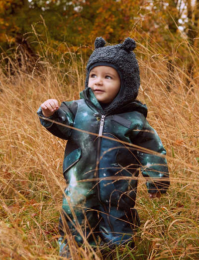 VandtætThis water-repellent snowsuit from Molo is made from recycled nylon. It features a detachable, lined hood and an extra-long zip at the front, making it easy to put on and take off. Elastic at the waist, sleeve, and leg cuffs keeps out snow, rain, and wind, while mittens and boots stay securely in place. The snowsuit also includes reflective bands on the pockets and sleeves, fleece lining at the bottom and back, and an internally adjustable elastic at the waist for a snug and comfortable fit.