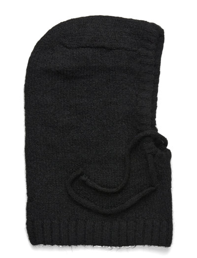 A soft knitted hood crafted from a hairy yarn blend with a touch of wool. Designed for a snug, balaclava-style fit, it features a ribbed hem and slim ties to adjust around the face. A functional layer that offers warmth and comfort under coats and jackets.