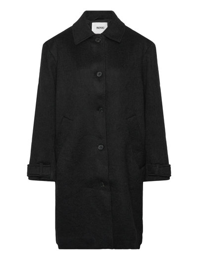 A straight-cut coat with a classic silhouette crafted with a touch of wool for added warmth. Designed with a pointed collar, button-up front, and angled welt pockets. It features adjustable buttoned tabs at the cuffs and a back vent for ease of movement. Fully lined for comfort, it falls to knee length for a clean, timeless finish.