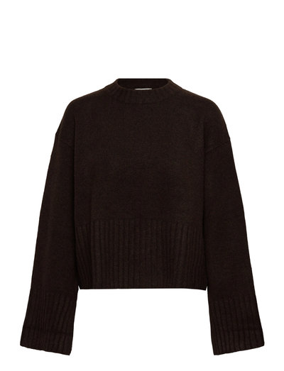 An oversized sweater featuring a crew neck, ribbed edges, and slit details on the arms. Made from recycled polyester and wool.