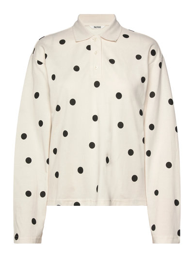 A long-sleeved polo top with a relaxed silhouette. Crafted from soft cotton, it features a ribbed polo collar, and a buttoned half placket. Finished with dropped shoulders and a straight hem.