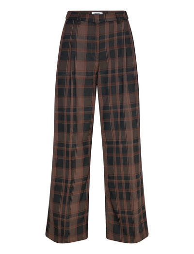 A pair of high-waisted trousers with a loose fit and wide leg. Crafted from structured twill, they feature a sharp front pleat, slanted side pockets, belt loops, and a hook-and-eye zip fly.