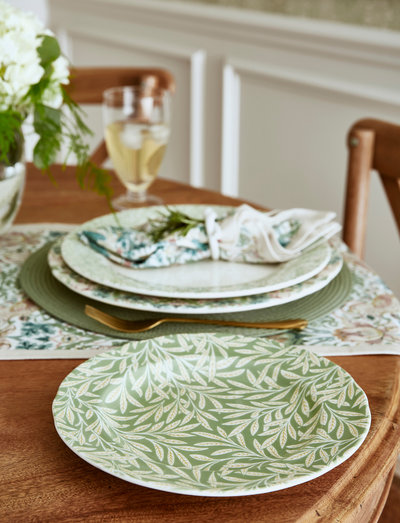 Dæk dit bord med de ikoniske mønstre fra Morris & Co. Denne sidetallerken er prydet med et gammelt mønster fra William & Co's arkiv; Willow, med en smuk gul og grøn nuance, der giver enhver borddækning et ekstra touch. De bløde toner og allover-mønstre giver en frisk maksimalistisk stil til dit bord. Brug den alene, når du serverer frokost, eller sæt den sammen med en af de andre tallerkener fra kollektionen for at få en betagende borddækning.