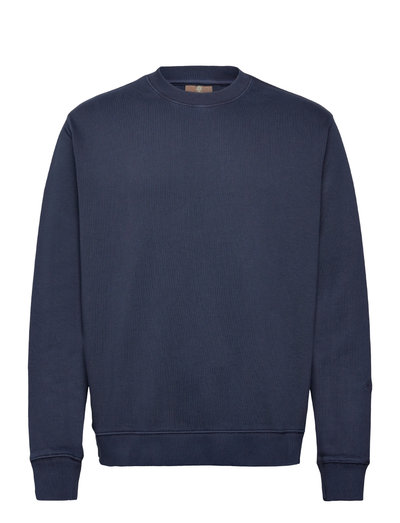 Denne sweatshirt har let sænkede skuldre, hvilket skaber en afslappet og ubesværet cool silhuet. Den regulære pasform og klassiske O-hals giver både komfort og diskret stil, hvilket gør den ideel til lagdeling eller brug alene.