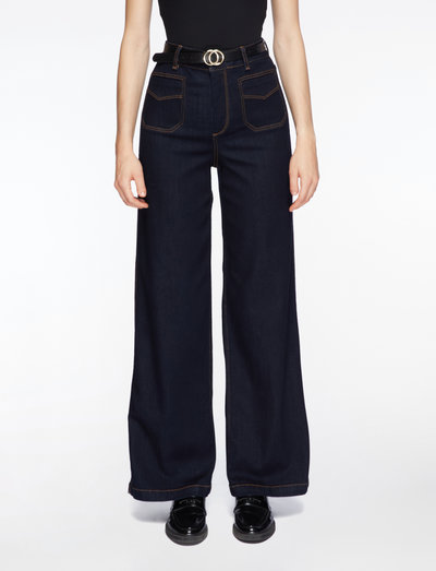 Disse trendy jeans er inspireret af 70'erne og har en flatterende høj talje og et stilfuldt, bredt ben. Designet har praktiske lommer, knaplukning og skjult lynlåsgylp. Brug dem med en bluse for et komplet og moderigtigt look.