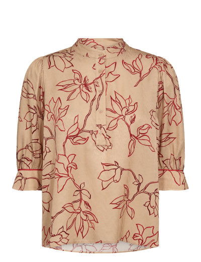 Eleana Leafy Blouse fra MOS MOSH er en stilfuld og komfortabel bluse med et smukt blomsterprint. Den har en stand-up krave, en knaplukning og tre fjerdedele ærmer. Blusen er perfekt til både afslappede og elegante lejligheder.