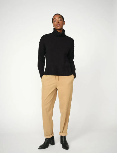 Disse bukser er designet med en flatterende, mellemhøj talje og et regulært fit, der kombinerer komfort og stil. Den elastiske linning med snore sikrer en perfekt pasform. Afslutningsvis har de klassiske baglommer, hvilket gør disse bukser perfekte til både afslappede og mere elegante outfits.