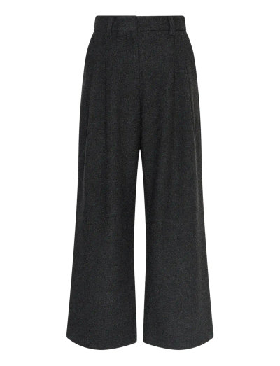 Disse bukser har en bred benvidde, der giver en moderne silhuet. Designet har en struktureret linning og diskrete læg, hvilket skaber en flatterende og behagelig pasform.