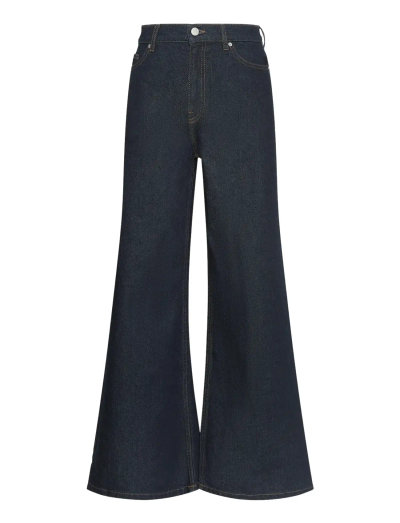 Disse jeans er skabt til en flatterende silhuet og har et bredt ben, der elegant blusser ud fra låret. Det klassiske design med fem lommer tilføjer funktionalitet, mens det robuste denim sikrer langvarig brug og et tidløst look.