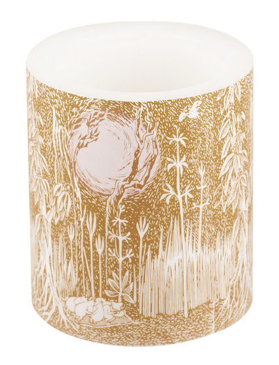Muurla's paraffin candles have a lantern like concave structure. The outer surface of the candle does not melt, allowing the candle light to glow through the pattern. Illustrations of Muurla's Moomin Originals series come from the Moomin novels, as they were originally created by Tove Jansson.