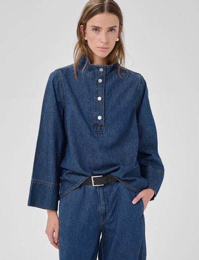 Loose fitHilmaMW 171 Boxy Blouse er en stilful og komfortabel denimskjorte. Den har en stand-up krave, en knaplukning og lange ærmer. Blusen har en afslappet pasform og er perfekt til afslappet brug.
