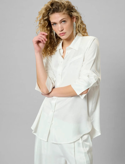 Denne langærmede skjorte er både skarp og ren og giver en tidløs silhuet. Med en knaplukning foran og en brystlomme er det en alsidig beklædningsgenstand, der kan bruges lagvis eller alene.