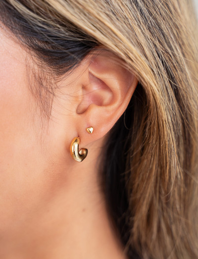 Disse fine, hjerteformede ørestikker tilføjer et subtilt strejf af romantik. De minimalistiske øreringe er perfekte til hverdagsbrug og giver et sødt og diskret præg til ethvert outfit.