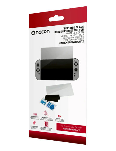Tempered glass screen protection for Nintendo Switch™2 delivers maximum 9H rigidity. Enjoy crystal clear images, low glare reflection, and an anti-fingerprint finish. Includes cleaning cloth, wipes, and dust-absorbent stickers for easy application.