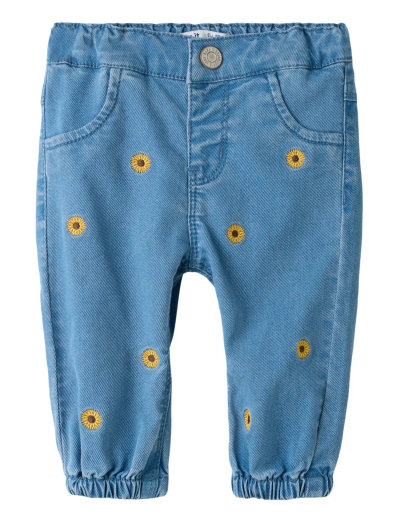 Regular fitDisse jeans med rund pasform har let slid, der giver et strejf af karakter, og er en cool og behagelig tilføjelse til ethvert barns garderobe. Denimstoffet sikrer et unikt look, mens den justerbare talje giver en fleksibel pasform. Elastiske kanter fuldender designet.