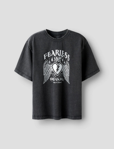 Denne kortærmede T-shirt er perfekt til hverdagsbrug, med et folieprint, der giver et skinnende look. Syrevasken giver den et kraftigt bleget look og en blødere overflade. Designet med en klassisk O-hals og en behagelig, almindelig pasform.
