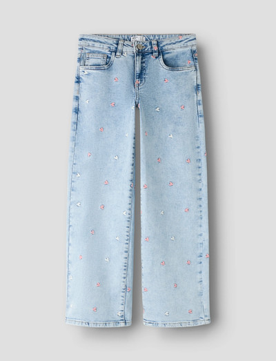 Wide fitSkab et komfortabelt og trendy look til dit barn med disse jeans med bred pasform, lavet af denim. Disse jeans har subtile slidmærker, for- og baglommer og en justerbar midt talje for en perfekt pasform. De har også en hægteknap og lynlåsgylp samt fine broderier.
