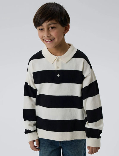 Denne strikkede polotrøje giver et behageligt og trendy look til hverdagsbrug. Med lange ærmer med dropped shoulders og ribkanter sikrer den en afslappet pasform. Knaplukningen i halsen tilføjer et klassisk touch til denne alsidige pullover.