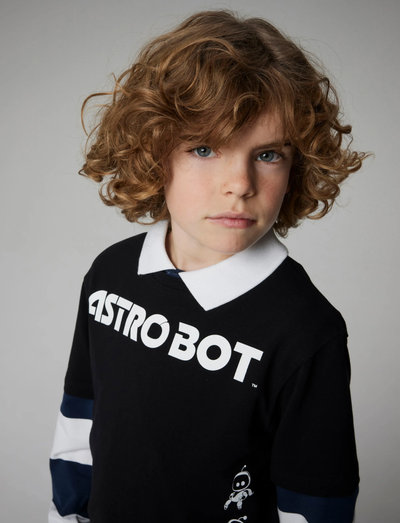 Opdater garderoben med denne behagelige jersey-top. Den har korte ærmer og en klassisk O-hals og er afsluttet med et legende gummitryk. Det bløde og strækbare stof sikrer en god pasform og bevægelsesfrihed, perfekt til aktive børn.