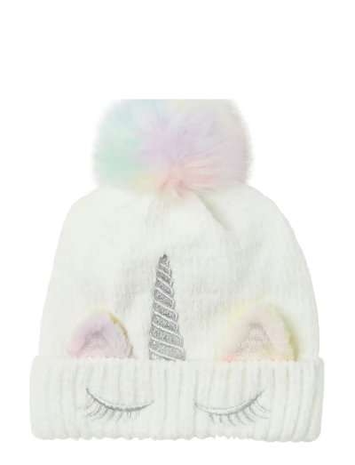 Denne hue har en blød strik og legende pomponer, der holder dit barn varmt og stilfuldt. Designet inkluderer charmerende broderidetaljer, der giver et ekstra sjovt touch.