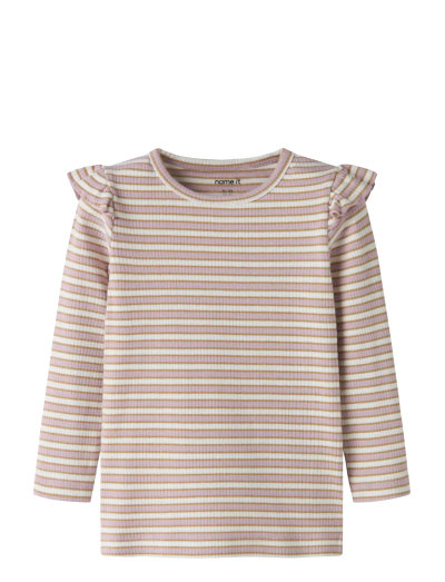 Denne langærmede top har en slank pasform og er fremstillet i strækbart ribstrik for komfort hele dagen. Flæse- og glitterdetaljer tilføjer et sjovt touch til dette design med rund hals.