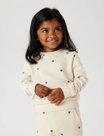 Denne sweatshirt er et godt valg til hverdagsbrug. Den har en klassisk rund hals og lange ærmer. Hjerteprinten overalt tilføjer et strejf af sødme.