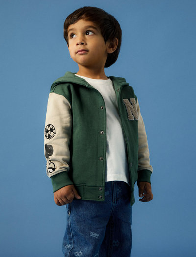 Denne behagelige cardigan er ideel til lagdeling og har en blød, børstet inderside. Den har lange ærmer, en klassisk O-hals og knaplukning, der gør den nem at tage på. Designet inkluderer praktiske forlommer og et cool skumprint.