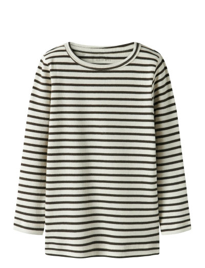 Denne ribstrikkede top har en klassisk rund hals og lange ærmer og giver en slank pasform. Det lodrette stribemønster tilføjer et strejf af tidløs stil, mens de ribstrikkede manchetter sikrer en tætsiddende og behagelig fornemmelse.