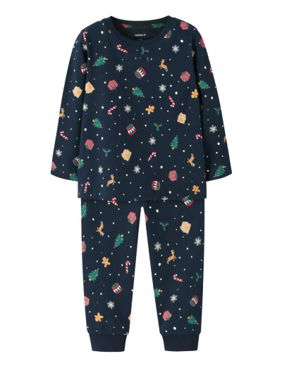 Dette bløde pyjamasæt med et festligt allover-print sikrer en behagelig nats søvn. Det lette jerseystof er strækbart, hvilket giver en blød fornemmelse og ubegrænset bevægelse. Designet med lange ærmer, perfekt til køligere aftener. Holdes væk fra ild.