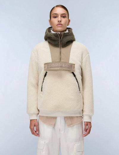 Denne komfortable trøje er fremstillet af 100% genanvendt, krøllet microfleece og har praktisk lynlåslukning og en behagelig hagebeskytter. Broderidetaljer giver et interessant visuelt udtryk.