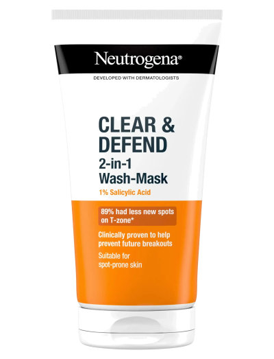 Neutrogena Clear & Defend 2-in-1 wash-mask 1 % Salicylic Acid 150 ml - Peeling masker