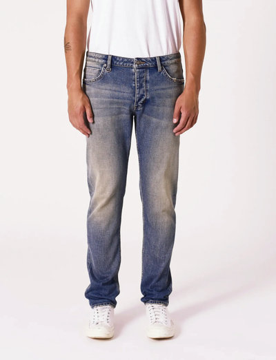 This straight slim jean maintains a consistent leg width from top to bottom