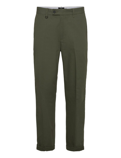 Disse bukser er fremstillet i et tekstureret ripstop-stof og giver en unik blanding af stil og slidstyrke. Med en klassisk knaplukning og praktiske bæltestropper giver de en sikker og justerbar pasform. Designet fuldendes med opsmøgede kanter, der tilføjer et strejf af moderne flair til silhuetten.